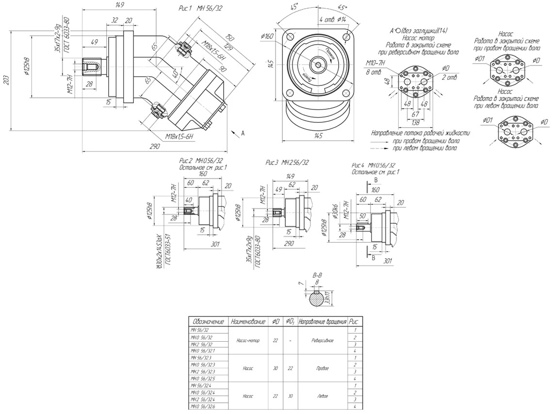 | Направление вращения вала | МН 56/32.3 | 310.3.56.03.06 (310.4.56.03.06) |