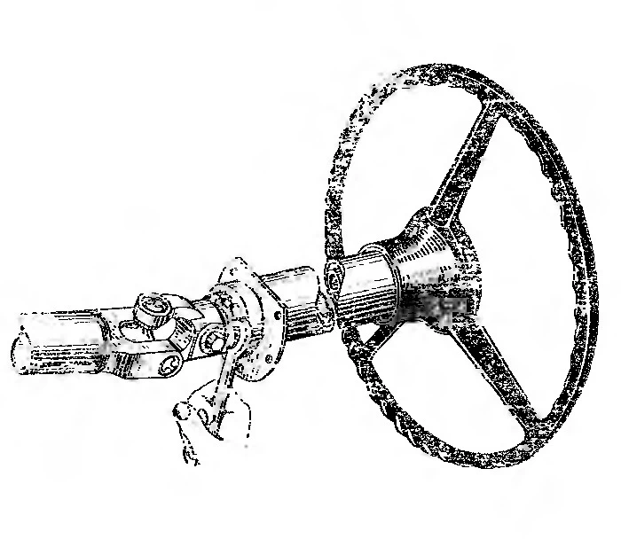 Осевое перемещение рулевого колеса недопустимо. При наличии осевого перемещения рулевого колеса необходимо подтянуть гайку (рис. 3), предварительно разогнув усики стопорной шайбы. После ре­гулирования один из усиков следует загнуть в паз гайки. Момент вращения вала рулевого управления, отсоединенного от карданного вала, должен быть равен 0,3—0,8 Н • м (3—8 кгс • см).