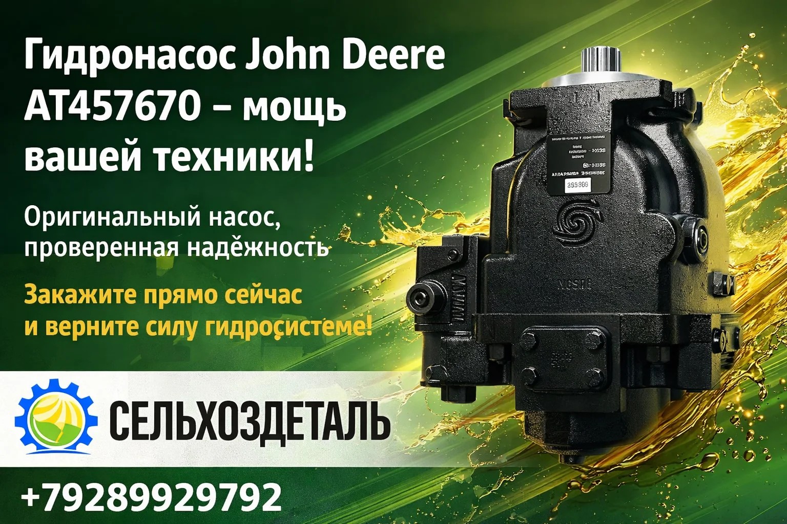 | 🛠 Аналоговые насосы (пример из рынка) | Hydraulikpumpe zu John Deere 65ccm AR94661, Hydraulikpumpe zu John Deere 40ccm AR39695 | Используются в других сериях техники John Deere (НЕ прямые заменители AT457670, но могут встречаться как аналоги в каталогах). |