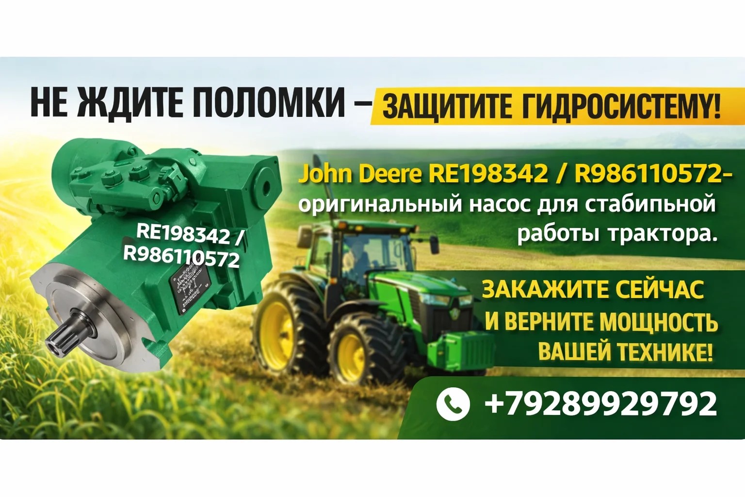 📞 Звоните или пишите прямо сейчас — и получайте оригинальный насос John Deere с гарантией!