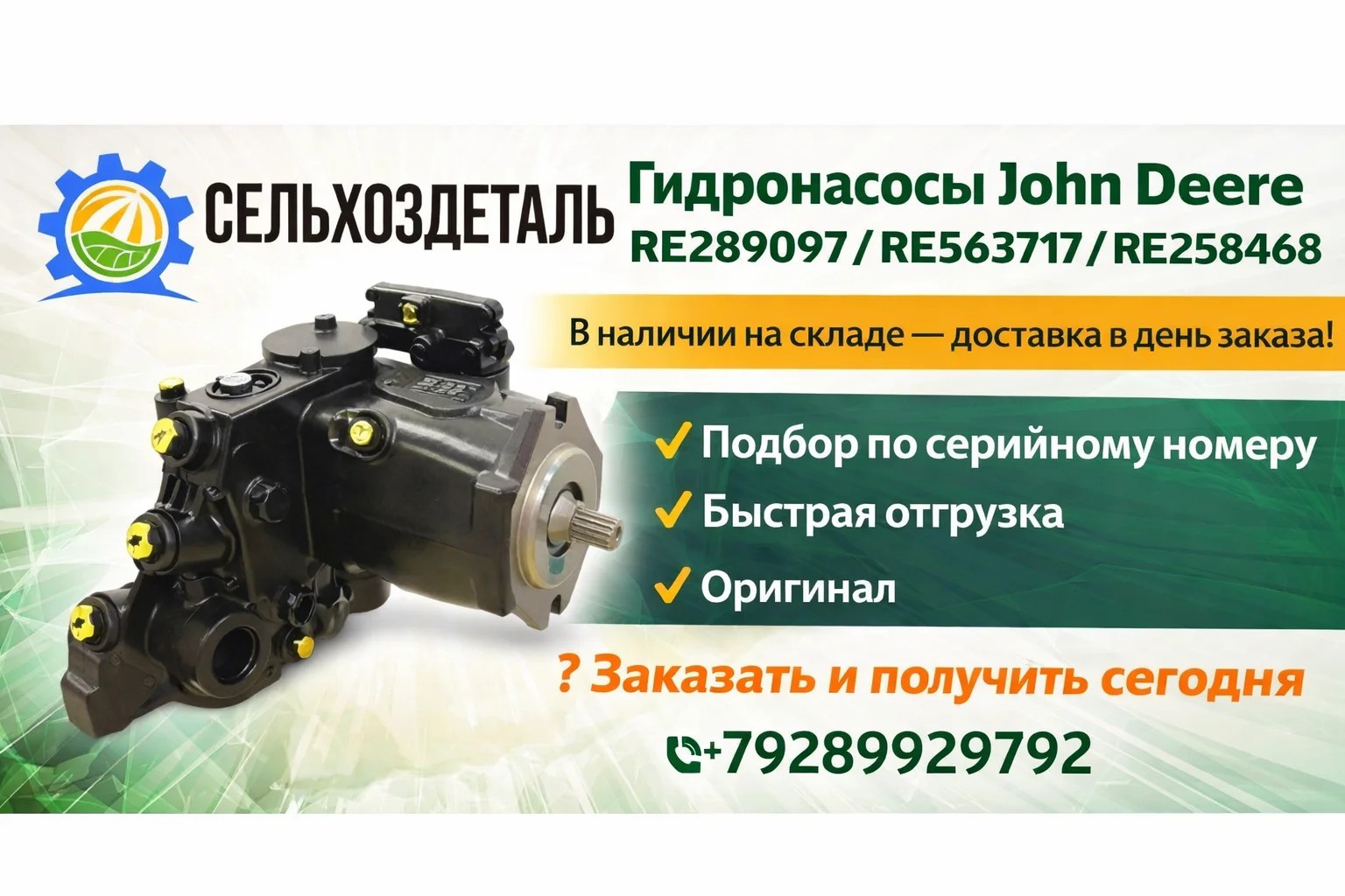 Нужен надежный гидронасос John Deere? Мы поможем: