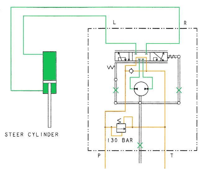 5) Положение руля меняется самопроизвольно. Необходимо проверить расположение внутри насоса самого золотника. Нейтральную позицию золотника обеспечивают две специальные пружины. Здесь стоит отметить тот факт, что если откажет хотя бы одна растягивающая пружина, то и само масло будет идти только на один цилиндр. В итоге при таком сценарии руль станет идти в какую-то определенную сторону.